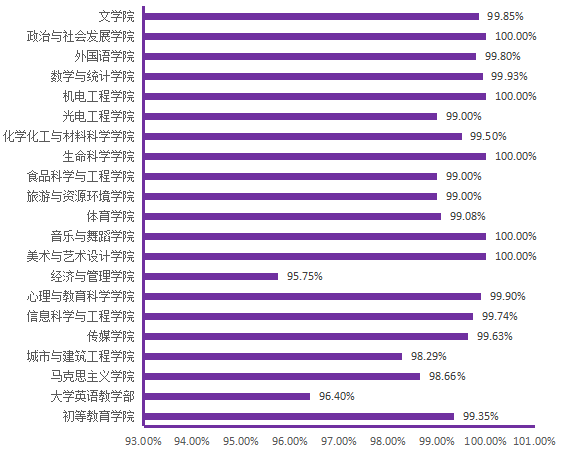 各院(部)的开课数、开课门次、班级数、教师数(人次)、学生数(人次)和学生上课率情况如下图所示: