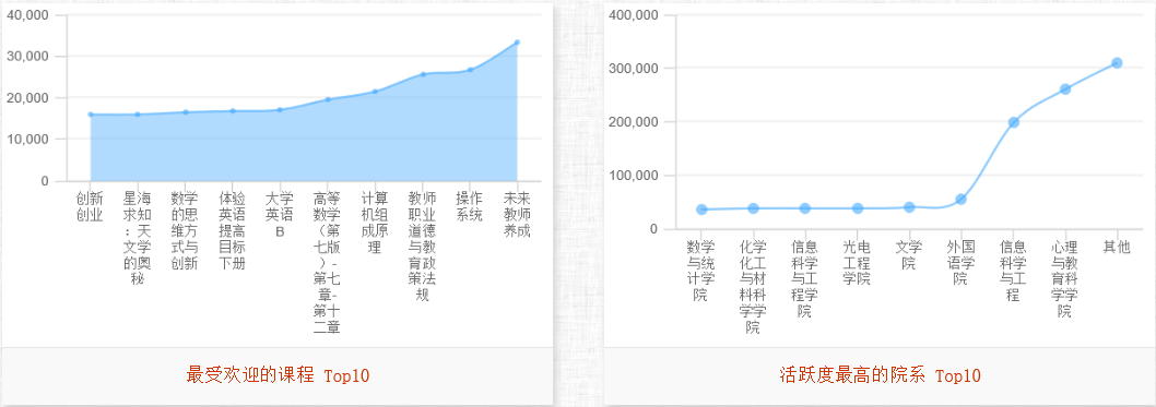 根据超星平台提供的大数据分析,可以查看最受欢迎的课程、较为频繁的活动类型、活跃度最高的院系和活跃度最高的用户分别为:
