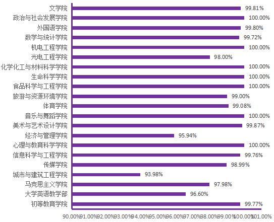 图6. 各院(部)3月9日线上学生上课率分布图