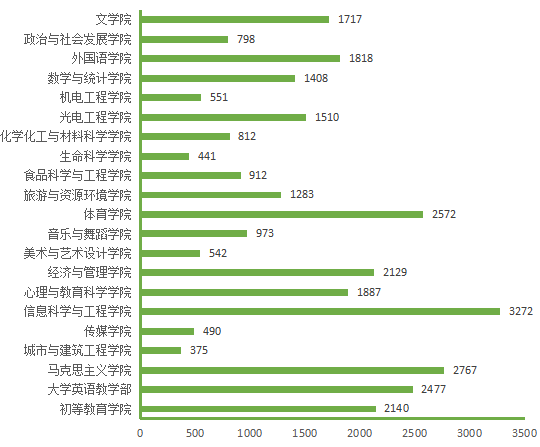 图5. 各院(部)3月9日线上授课学生数(人次)分布图