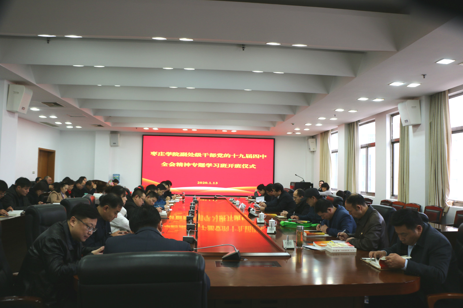 1月15日下午,LETOU官网副处级干部党的十九届四中全会精神学习班结业仪式在综合楼三楼会议室举行。校党委书记曹胜强出席会议并讲话。组织部部长田素安、全校副处级干部参加会议。