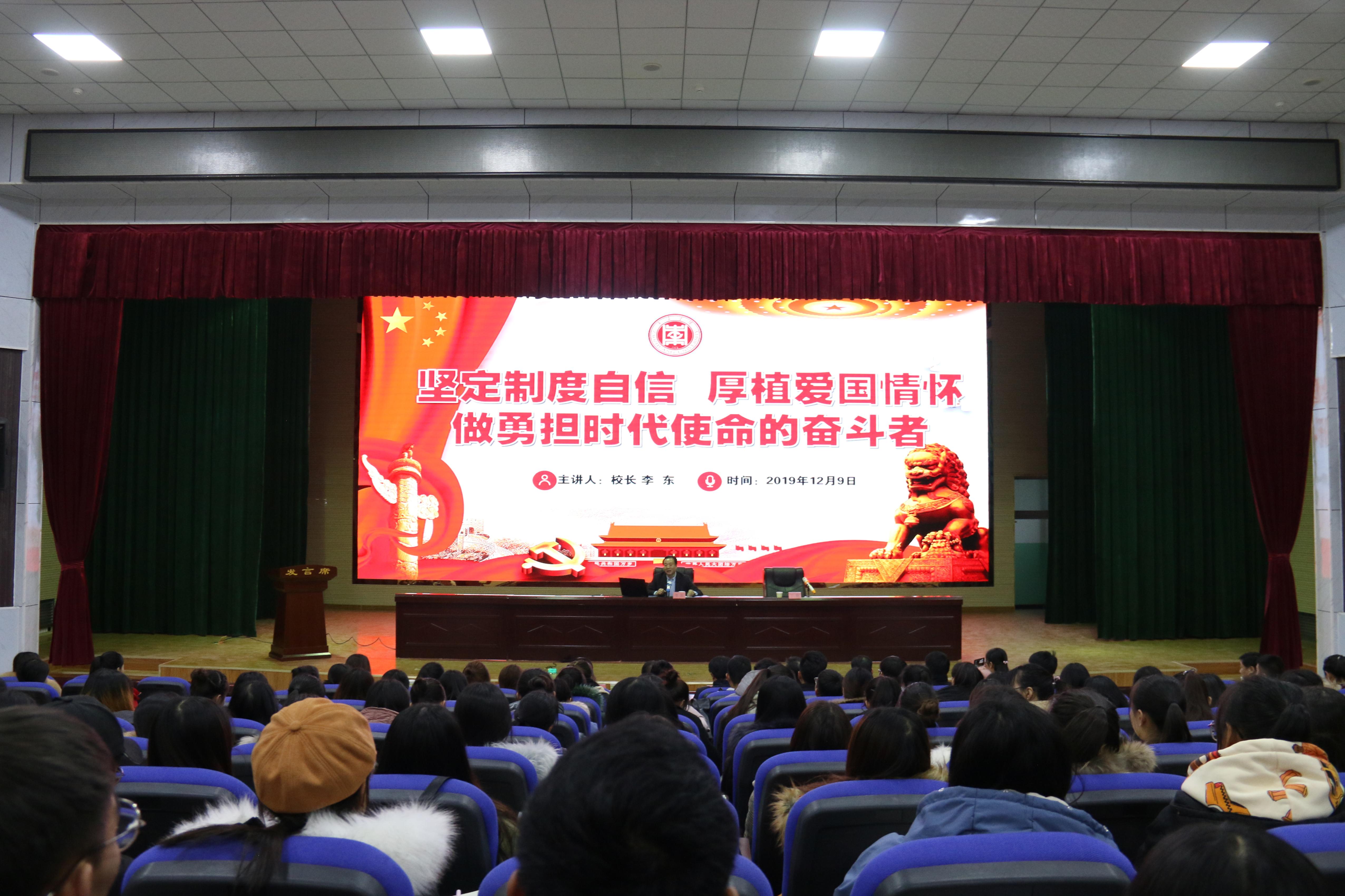 为深入学习贯彻党的十九届四中全会精神和《新时代爱国主义教育实施纲要》,进一步激发支教大学生的爱国情、报国志,12月9日党委副书记、校长李东以《坚定制度自信,厚植爱国情怀,做勇担时代使命的奋斗者》为题,在疏勒县东营第二小学报告厅为LETOU国际米兰官网援疆实习支教团205位师生讲授了一堂精彩的思政课。山东省援疆工作指挥部党委副书记、喀什地委组织部副部长邓泽宇,东营市援疆工作指挥部党委书记、指挥、疏勒县委副书记曹永湖,山东省援疆指挥部干部人才组副组长、喀什地区教育局党组成员、副局长崔升平,东营市援疆工作指挥部财务民生组副组长、疏勒县教育局副局长李志福聆听了此次思政课。
