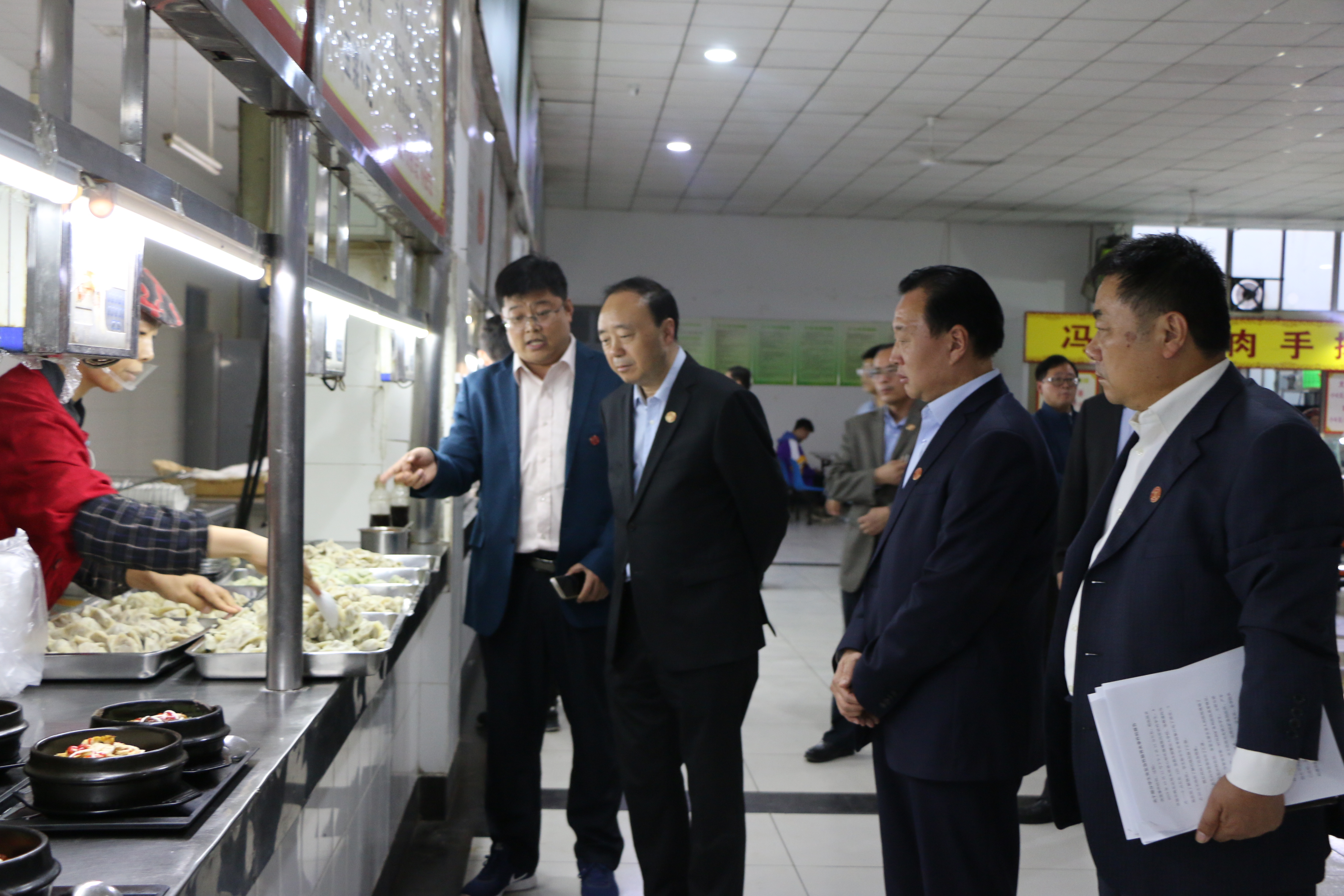 座谈会前后,曹胜强、李东、李目海带领相关人员实地察看了校园安全、餐饮服务、食品安全监管等情况。在桂园餐厅,校领导对食堂操作流程进行详细检查,就原材料的采购,台账的管理,食材的验收、管理、储存等具体环节听取了后勤管理人员的现场汇报,并询问食堂工作人员有关食品加工、烹饪、销售等具体工作细节。