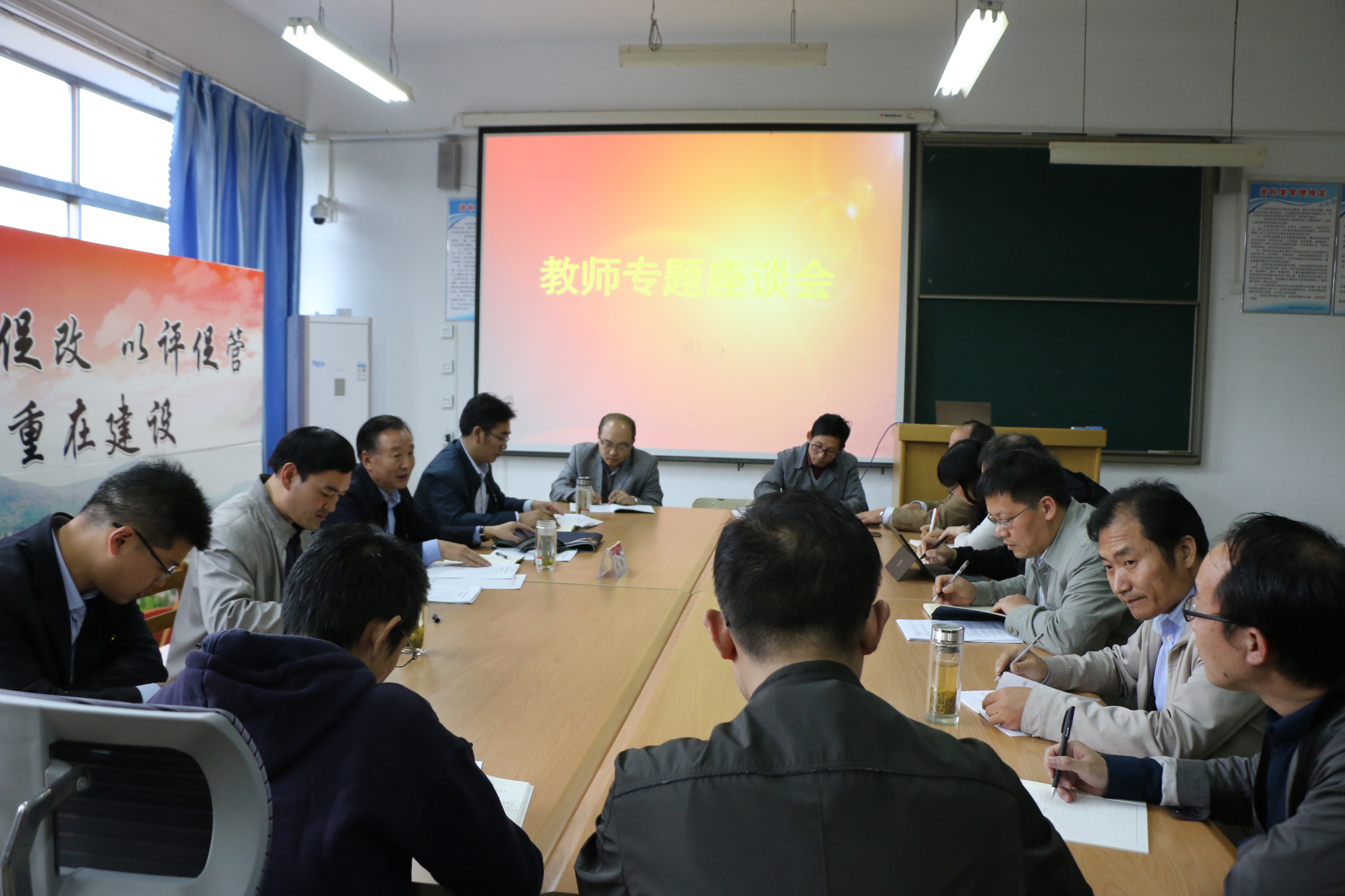李东先后来到光电工程学院及食品科学与制药工程学院进行了深度访谈,相关学院负责人分别从学院专业建设现状、学院对专业发展的思考、面临的困难及建议等方面进行了交流汇报,并对学校专业布局及专业内涵建设提出了建设性意见。来自9个学院的教师代表围绕专业建设这一主题,立足本职岗位,分别从专业布局、专业特色、师资队伍建设、教师教学能力提升、教学研究与改革及存在的问题等方面积极发言,对学校及学院的专业建设提出了中肯的意见和建议。