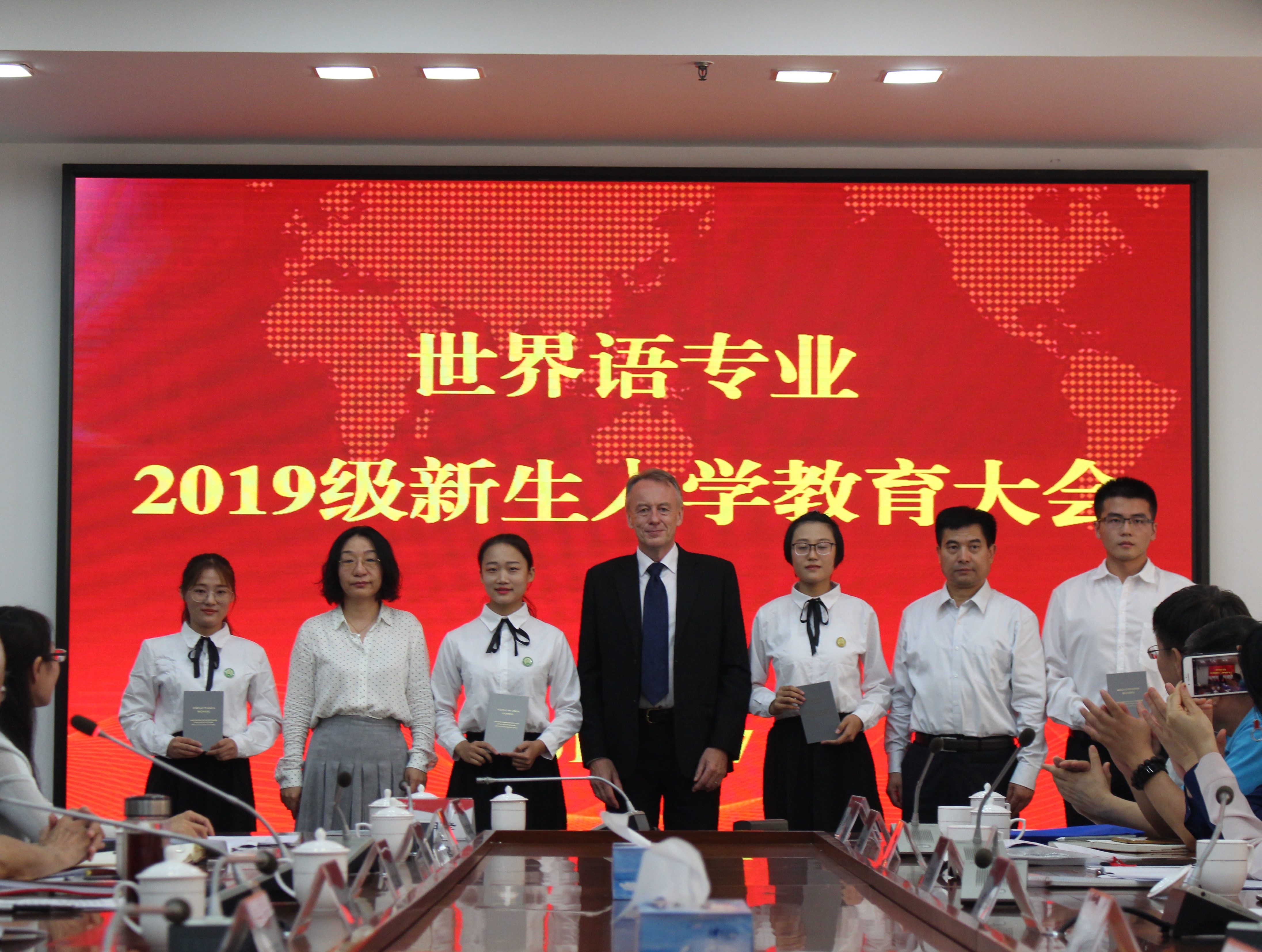 在世界语专业新生入学教育阶段,外国语学院副院长褚夫敏从师资队伍建设、课程建设、实践教学、教学科研、国际化办学五个方面汇报了世界语专业建设情况。教师代表李威伦教授分享了自己对世界语的看法和世界语学习之道。中国报道杂志社网络部主任陈吉从世界语外宣的角度鼓励同学们心有爱国情,怀揣阳光梦,书写青春歌,讲好中国故事。在校生代表张悦和新生代表宋振远承诺,作为世界语的接班人,一定不忘初心,努力做世界语的学习者、研究者、践行者和传播者。