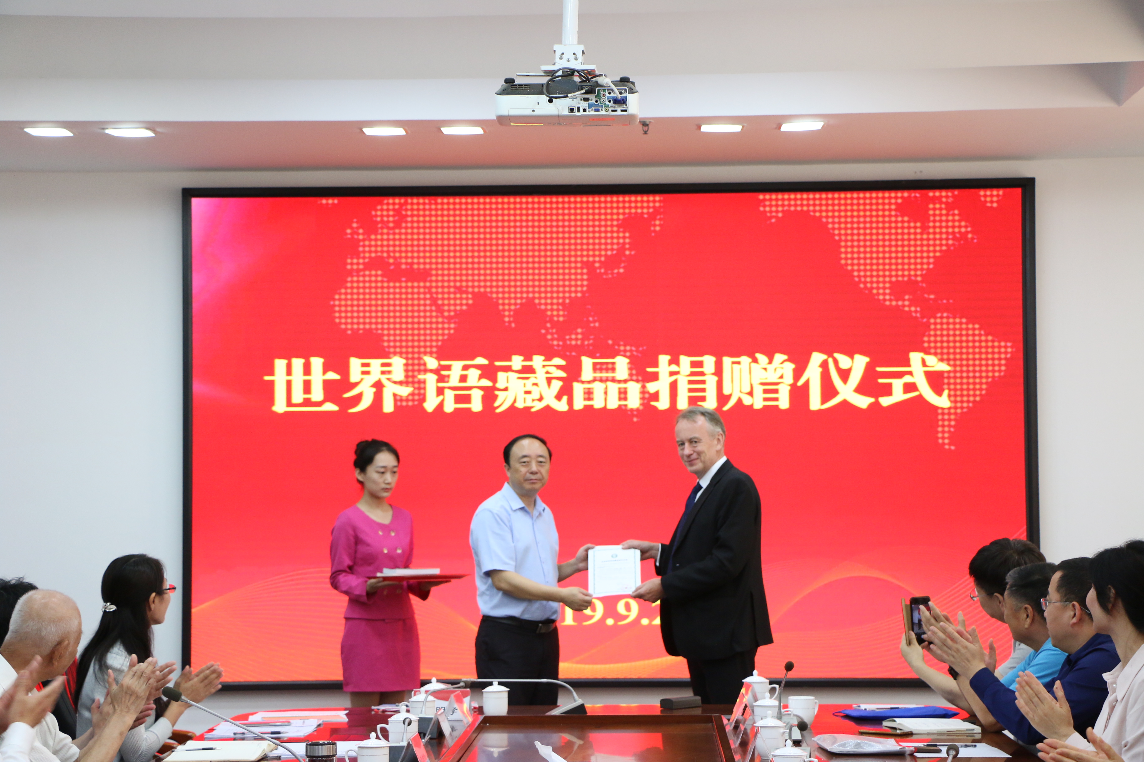 学校党委书记曹胜强接受了拉格纳尔·鲍德松先生向学校世界语博物馆捐赠的藏品,为其颁发捐赠证书并向拉格纳尔·鲍德松先生赠送LETOU官网编译的世界语全译本《聊斋志异》。