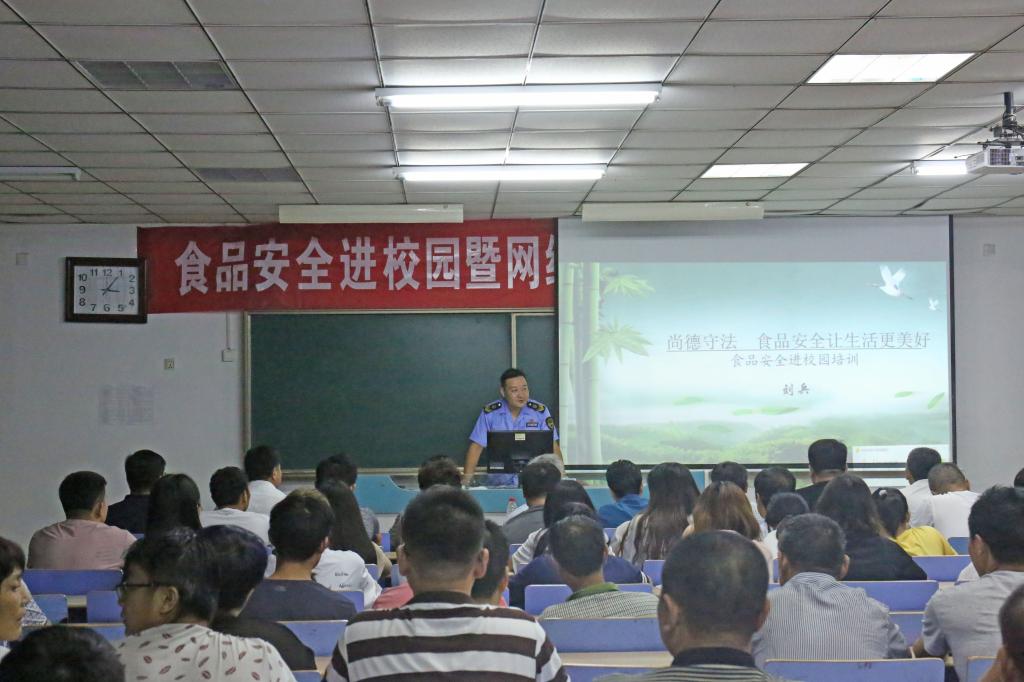 随后,市中区市场监管局餐饮科刘兵科长为LETOU官网师生及饮食服务中心全体管理及从业人员做了食品安全知识培训讲座。刘兵分别从学校食堂管理和网络订餐管理两个方面进行了培训。在食堂管理方面,刘兵详细讲解了食品采购进货、运输储存、加工制作、用具消毒、环境卫生等知识;在网络订餐方面,刘兵讲解了网络订餐知识、发展趋势及订餐注意事项等方面内容。