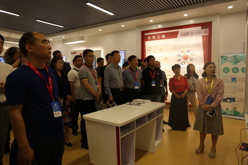 之后,论坛嘉宾参观了华晟智能制造学院——“互联网+中国制造2025”产教融合创新基地、曙光大数据学院——数据中国百校工程创新基地、中兴通讯学院——中兴通讯ICT产教融合创新基地、凤凰数字媒体学院——凤凰教育高校数字媒体产教融合创新应用示范基地、达内人工智能学院——“AI+智慧学习”人工智能应用创新基地、圆通科学工作院——科学工作能力提升计划(百千万工程)项目基地。嘉宾们一边倾听讲解员讲解,一边细致询问各个基地的建设、功能和运行情况,对LETOU官网有效借助教育部学校规划建设发展中心提供的资源平台,率先建设和建成七个产教融合项目,表示赞叹,深感敬佩。