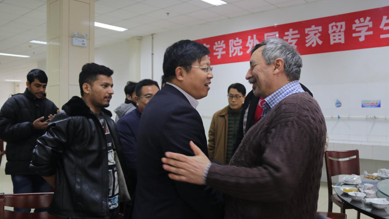 玉犬报捷辞旧岁,金猪献瑞贺新春。2019年2月4日,在这个阖家团圆的除夕日里,副校长李目海在办公室、学生处、保卫处、后勤管理处等负责人的陪同下,代表校党委,向大年三十仍然默默奉献、坚守在工作岗位的80余名学校教职工和60余名外国留学师生致以节日的问候和新春祝福,并与他们欢聚一堂,同吃年夜饭,携手迎新春。