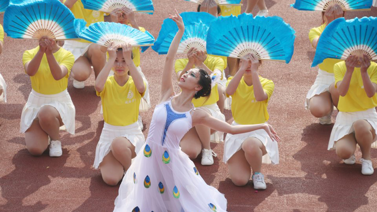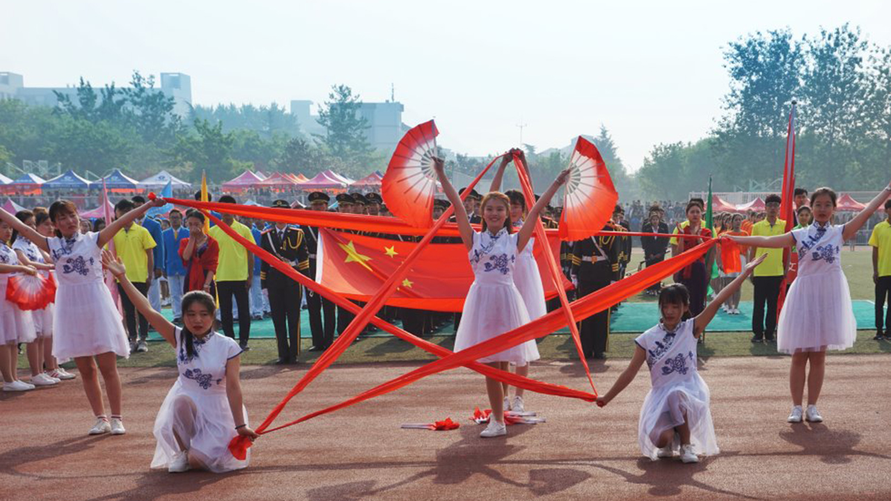 丰富多彩的文体表演将开幕式现场气氛推向高潮。健身气功动作轻灵飘逸、浑融凝重,武术表演拳法高明、刀剑共舞、牧羊鞭长扬,健美操与舞蹈表演热情奔放、活力四射,由全校19个学院900名学生表演的团体舞编排新颖、队形华丽,朝气蓬勃的青春风貌汇聚成运动场上一道靓丽的风景线。