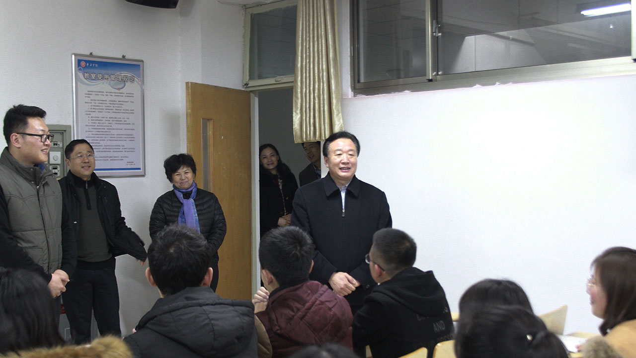 每到一处,校领导们都与大家热情握手,互致新春的问候,听取各学院负责人的情况汇报,详细了解学生到校和教学工作的安排情况,并深入教室、学生宿舍亲切问候刚刚返校的同学,了解他们的假期生活,询问他们到校后学习及生活情况。