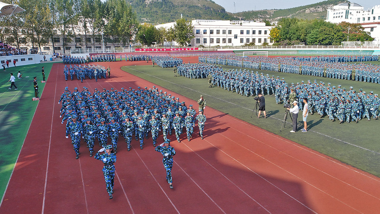 在庄严的升国旗仪式后,大会进行分列式表演。经历了严格训练的49个新生方队步伐坚定、精神抖擞,依次通过主席台,接受了部队首长和校领导的检阅。飒爽的英姿辉映着蓝天白云、嘹亮的口号响彻金秋校园,2017级新同学们充分展现了枣院学子奋勇争先、昂扬向上的良好风貌。