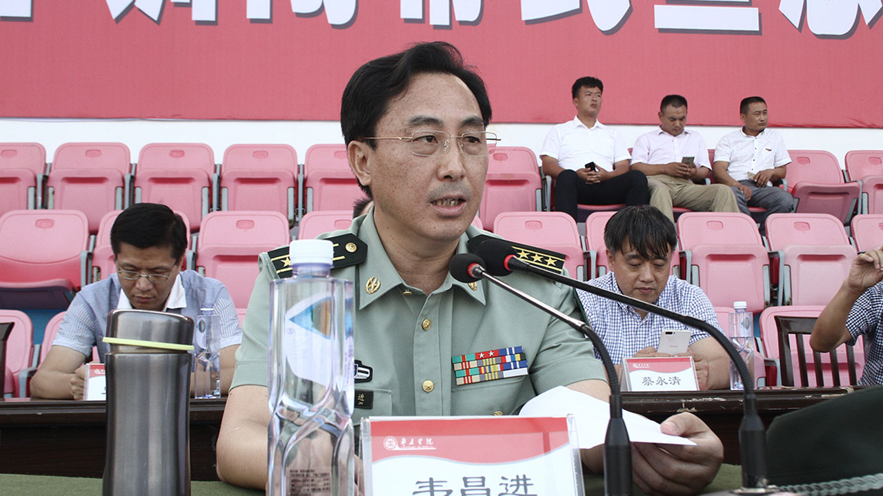李进京在大会上发表了讲话,代表学校领导和全体师生对中国人民武装警察部队枣庄市支队和全体教官表示崇高敬意和衷心感谢!