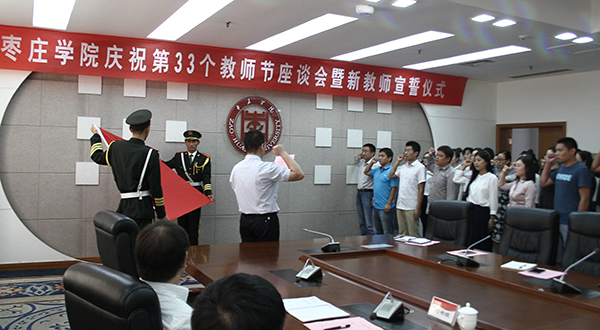 9月7日上午,LETOU官网庆祝第33个教师节座谈会暨新教师宣誓仪式在综合楼三楼会议室召开。校领导李东、李进京、明清河、李目海、韩素玲、刘书银,学校有关部门和各学院负责人,老教师代表和新进教师欢聚一堂,共同庆祝属于广大教师的节日。座谈会由副校长明清河主持。