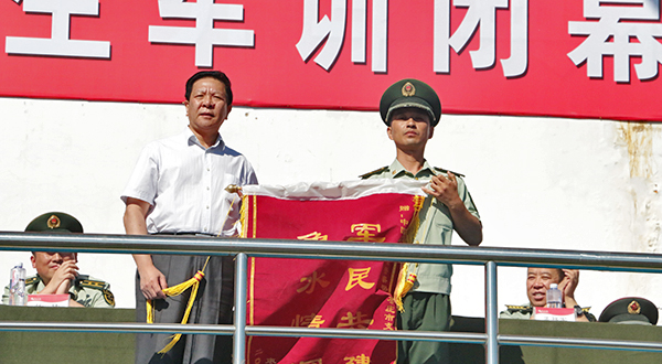 会上,校党委书记胡小林向参训部队赠送锦旗,对承训全体教官表示崇高敬意和衷心感谢。