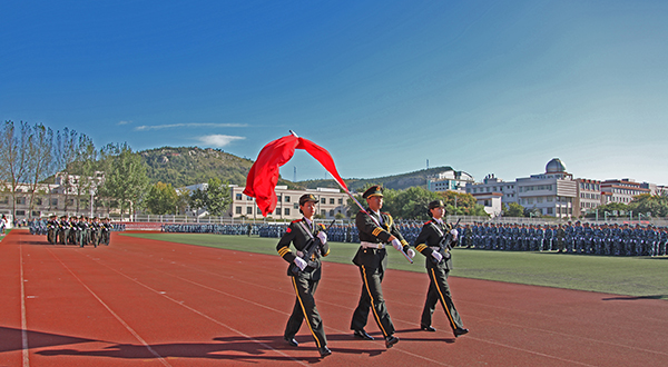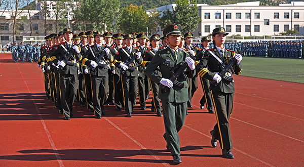在庄严的升国旗仪式后,大会进行分列式表演。经历了严格训练的四十个新生方队迈着铿锵有力的步伐通过主席台,接受领导检阅。雄壮的进行曲、嘹亮的口号响彻校园,2016级新生精神昂扬,军姿严整,动作规范,充分展现了当代大学生积极向上的精神风貌。