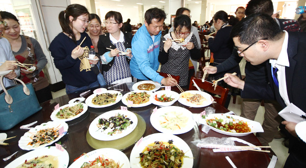 评委们根据菜肴的营养搭配、制作工艺和色、香、味、型当场打分,经过综合评比,最后,学生工作处的盖一飞和机电工程学院的肖洋分获荤菜和素菜组的一等奖;经济与管理学院的宁攀、数学与统计学院的孔庆兰、外国语学院的褚夫敏、旅游与资源环境学院的孙凭、思想政治理论课教学部的刘新全、机电工程学院的岳国强荣获二等奖;光电工程学院的王岩、传媒学院的王炎、国际交流与合作处的巴岩、图书馆的吴伟、机电工程学院的焦成冉、后勤处的张发、信息工程学院的王福亮、生命科学学院的陈丽、化学化工与材料科学学院的曹楠、光电工程学院的孙守超获三等奖。