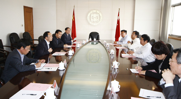 4月16日上午,聊城大学副校长窦建民率队来LETOU官网考察交流。校长曹胜强会见了考察团一行,并就科学研究、专业学位研究生培养等工作进行了座谈交流。