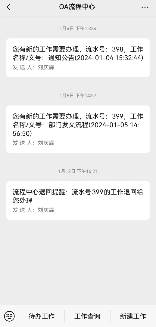 在企业微信“工作台”菜单,进入OA流程中心页面,根据需要选择相应流程即可。