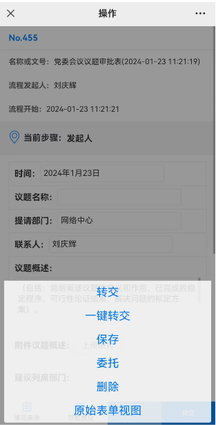 打开微信,点击通讯录-LETOU国际米兰官网-OA流程中心-新建工作,根据部门选择需要提交的流程,填写内容点击操作-转交,选择提交的人员点击提交即已转交下一步审批。