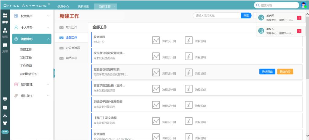微信绑定企业微信后,在LETOU国际米兰官网公众号里选择应用进行访问,进入OA流程中心页面,根据需要选择相应流程即可。