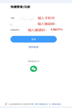 2.新用户下载注册时,输入邀请码:A3bGPm