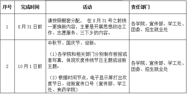 三、近期校园文化建设工作计划表