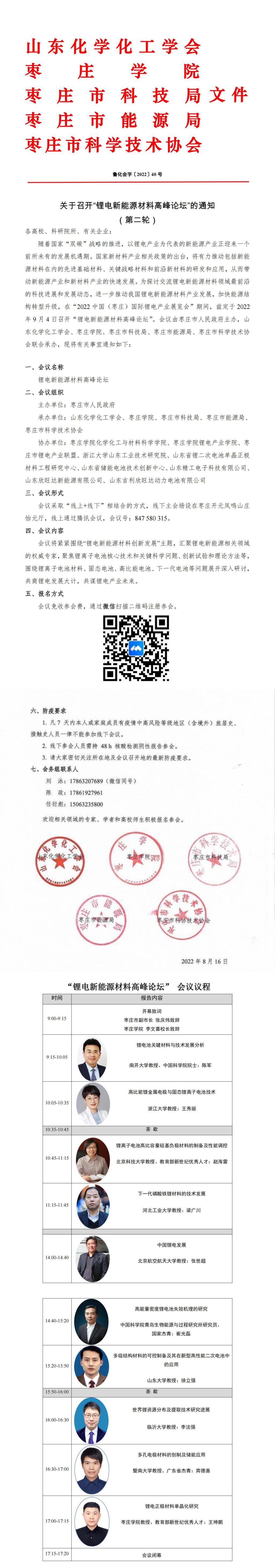 关于召开“锂电新能源材料高峰论坛”的通知 (第二轮)