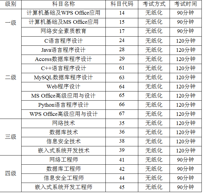 备注:各科目考试大纲、教材及获证条件见中国教育考试网(http://ncre.neea.edu.cn)。
