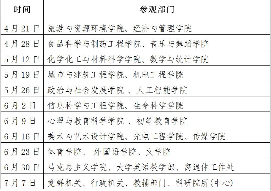 2.各学院、机关单位明确1名带队人员,到达集合点清点各单位参观人数;