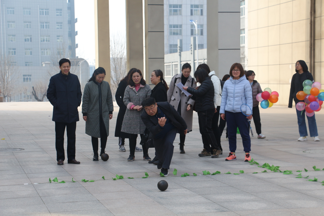 为纪念“三八”国际劳动妇女节,落实校妇委会和工会“巾帼心向党,奋斗新征程”活动要求,丰富女教职工的文化生活,激发女教职工快乐工作、健康生活的热情,3月8日,心理与教育科学学院在教师教育楼小广场举办趣味运动会。学院党总支书记赵荣军、院长傅金兰、党总支副书记宋明峰带领学院全体女教职工参加活动。