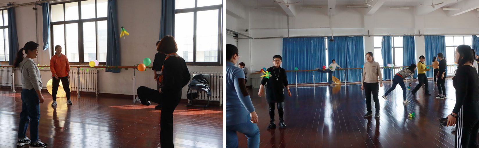 随后,进行了托球接力跑、踢毽子和丢沙包等趣味运动会项目。活动现场精彩纷呈、妙趣横生,教职工们热情高涨,助威声、加油声、欢笑声此起彼伏。其中,踢毽子环节,4人围成一圈,小小花毽在大家脚上翻飞传递。这些久违的“经典游戏”,大家玩的欢声笑语,其乐融融,仿佛又回到了童年时光。大家纷纷表示,这些游戏虽然简单,但纾解了繁忙工作的压力,增进了同事间的了解交流,收获满满。