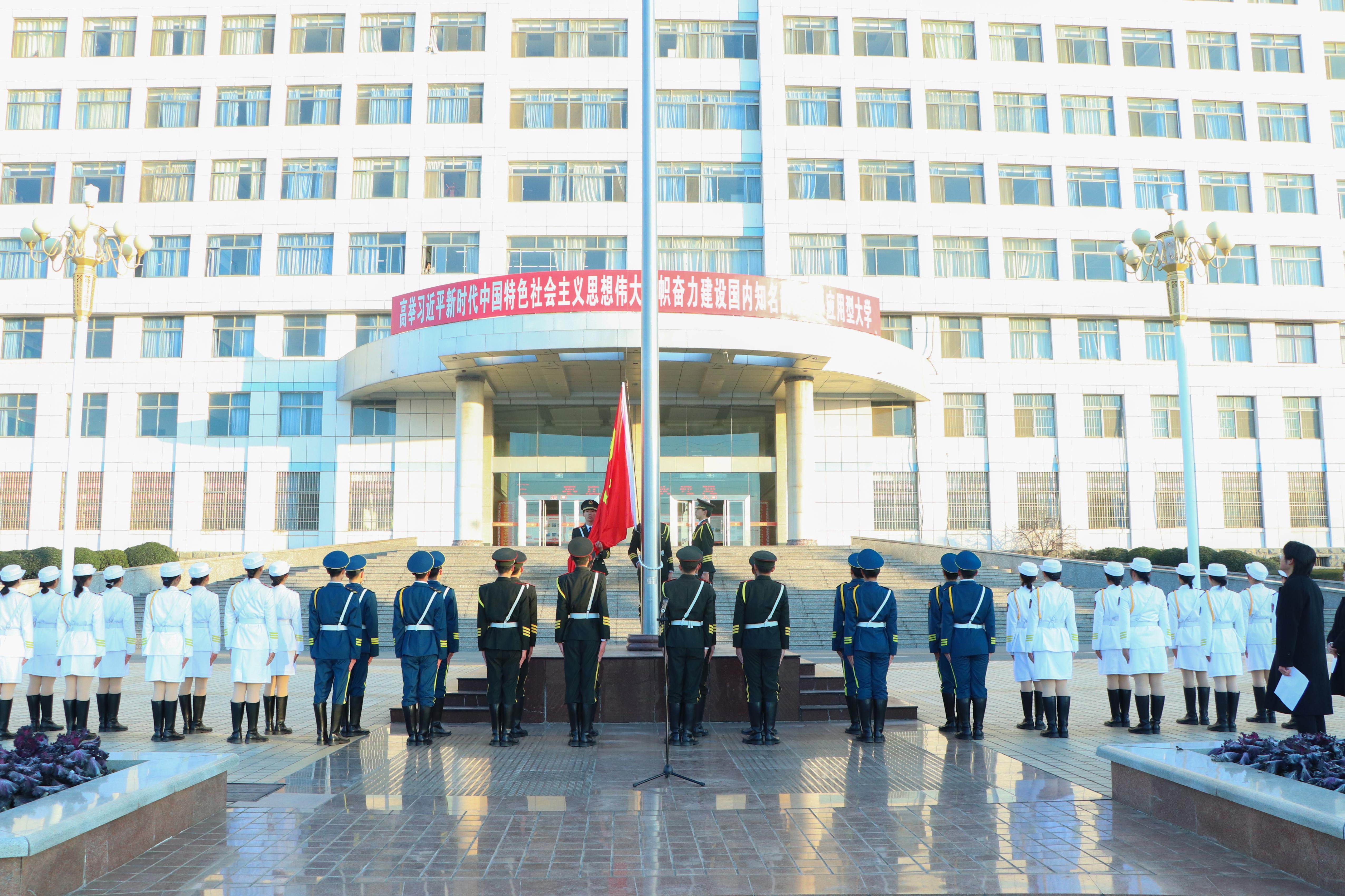 为庆祝元旦佳节,进一步激励全校青年学子凝聚奋进力量,不忘初心、牢记使命,以更加饱满的热情和奋发有为的精神状态投入到新一年的学习和工作中,2021年1月1日上午,校团委于综合楼前举行以“新时代,新气象,新征程,新作为”为主题的元旦升旗仪式,各二级学院共千余名青年学子参加升旗仪式。