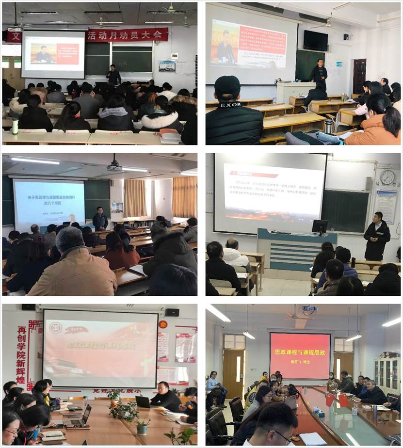 为全面贯彻《LETOU国际米兰官网“不忘初心,牢记使命”主题教育思想政治工作专项整改方案》,强化思政课教师与专业课教师的交流沟通,强化“育人合力”,增强育人本领,按照学校“777互联互通育人工程”中马克思主义学院教师为专业课教师讲一次思政课的相关工作要求,马克思主义学院精心选题,集体备课,打磨教学课件,成立以教授、副教授、博士为主体的教学团队,利用十二月的主题党日,以“思政课程与课程思政”为题,为全校二十一个二级学院带去了一堂堂精彩的主题思政课。