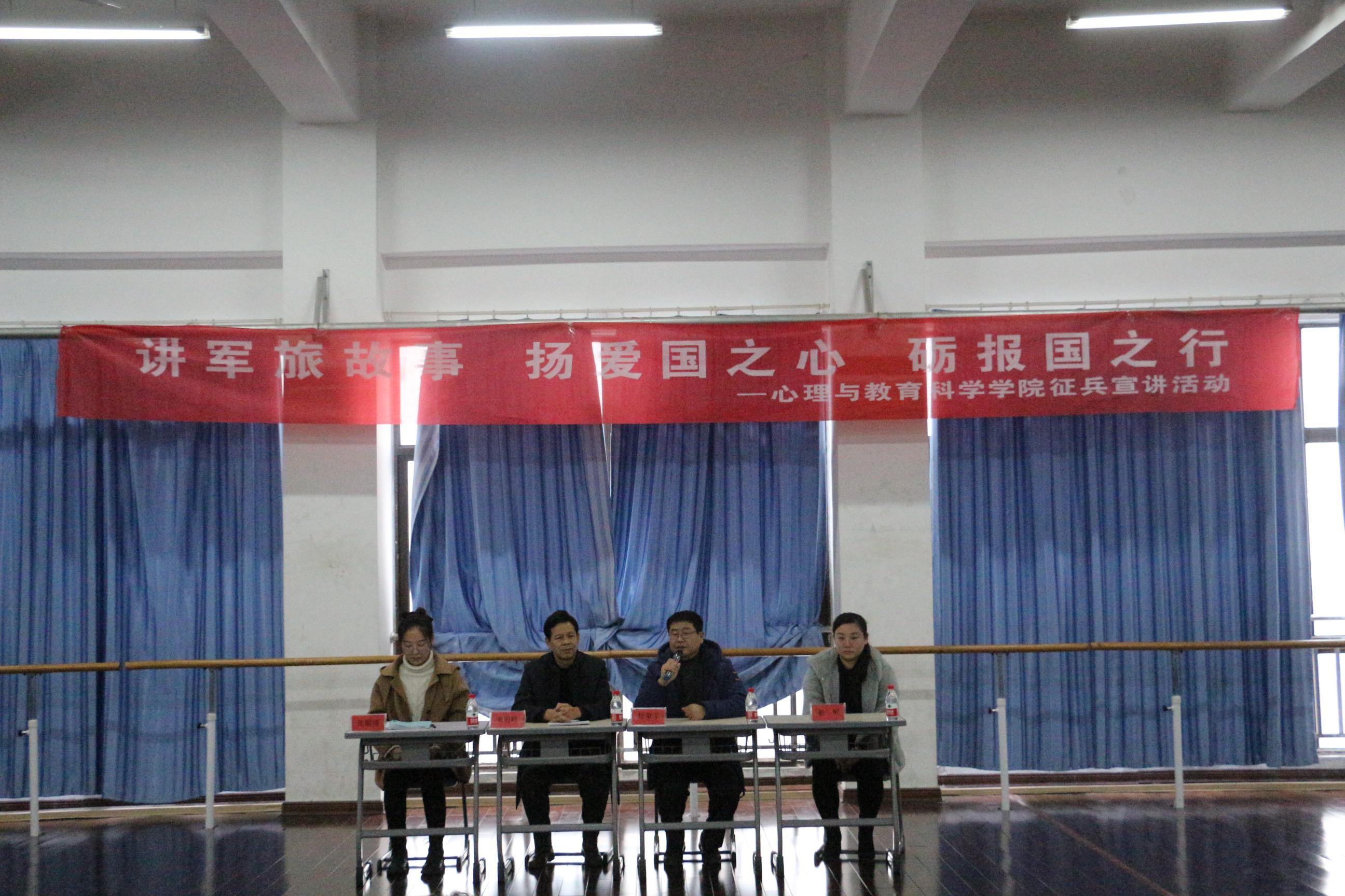 12月29日下午,心理与教育科学学院在教师教育实验楼504室召开“讲军旅故事,扬爱国之心,砺报国之行”征兵宣讲会,优秀退伍大学生曹凤佳、姚柯莹、李修建担任宣讲人,学院党总支书记赵荣军、党总支副书记宋明峰、学生党支部书记靳昕、征兵负责人张丽嫱及2020级有意入伍学生参加了本次活动。 赵荣军在会上对退伍大学生的入伍经历表示了肯定与赞赏,并提出,做好大学生征兵工作是党和国家赋予高校的政治责任和历史使命,入伍大学生在部队发展应大有作为。依法服兵役是中华人民共和国每个公民应尽的责任和义务,希望同学们能积极响应国家号召,为学院和学校增光添彩,为祖国的国防建设添砖加瓦。