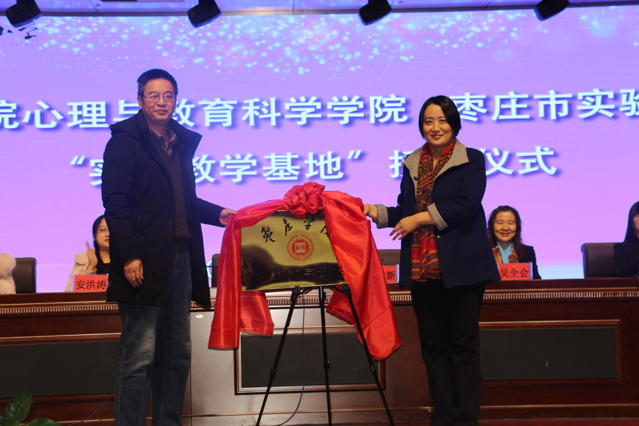 12月16日,心理与教育科学学院教学实践基地在枣庄市实验小学揭牌,市教科院高中教育研究室主任杨立新、心理与教育科学学院院长傅金兰、副院长安洪涛、枣庄市实验小学校长于伟利和师生代表参加了此次揭牌仪式。