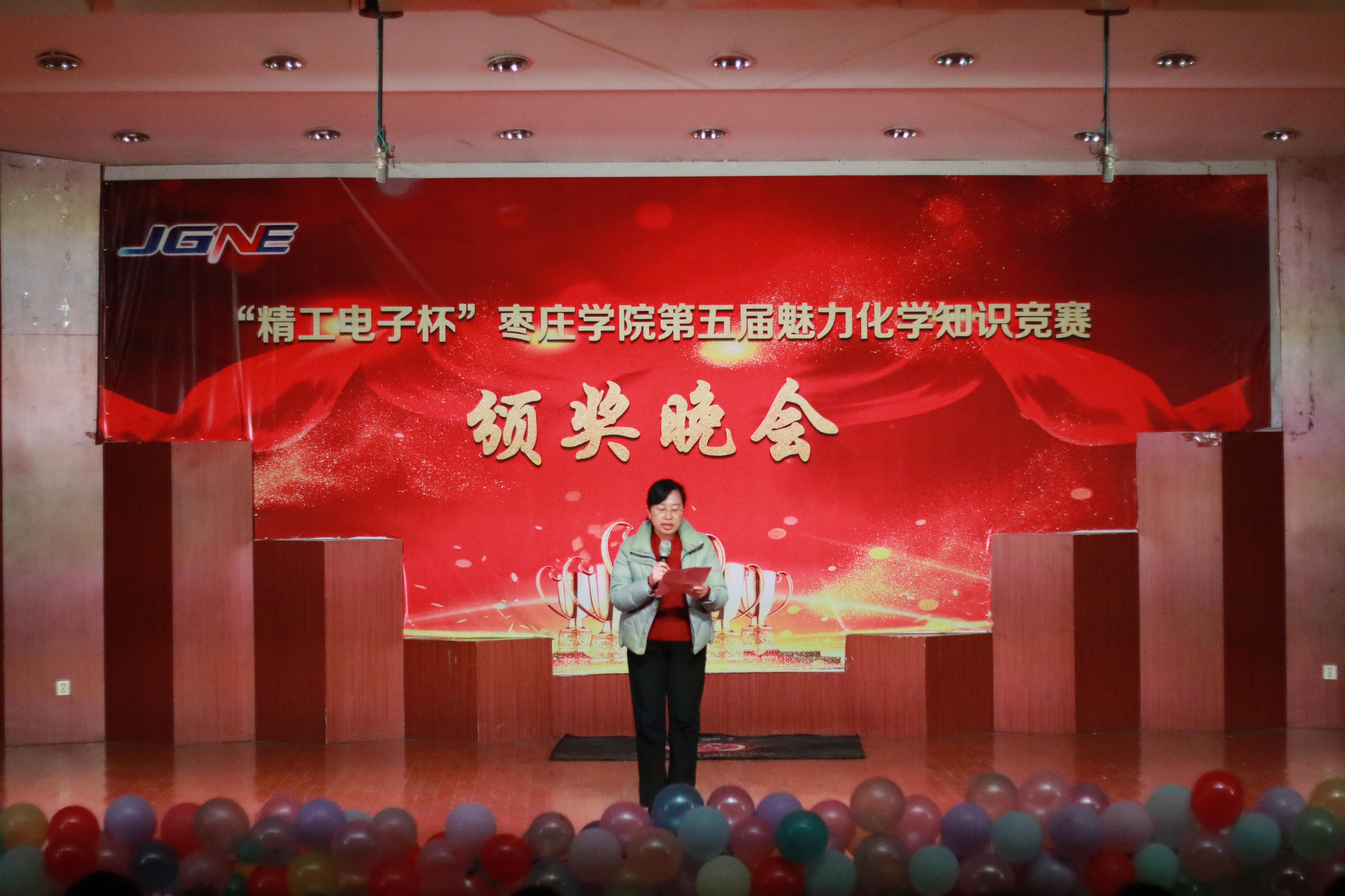 刘春丽向山东精工电子科技有限公司对晚会的大力支持和指导表示感谢,希望双方以此为契机,不断加强沟通和交流,加大校企合作力度,积极探索产、学、研合作新模式。她勉励同学们要不断总结经验、查找不足,再接再厉继续探索化学的奥妙,走进化学、学习化学、爱上化学。