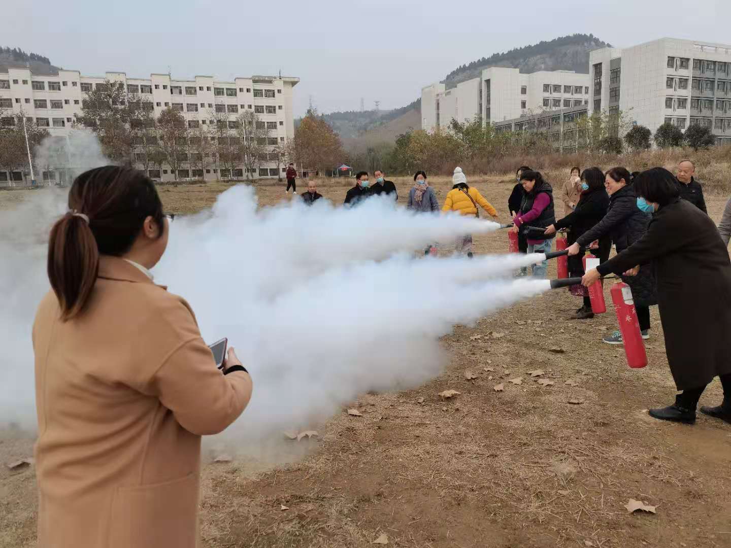 12月2日,实验室管理处与保卫处联合在校东操场组织开展实验室安全管理人员消防演练活动。来自保卫处、实验室管理处、计算机实验教学中心、生物学实验教学中心、机电工程实验教学中心、化学化工实验教学中心等22个单位的70余名教职员工参与了本次消防演练活动。