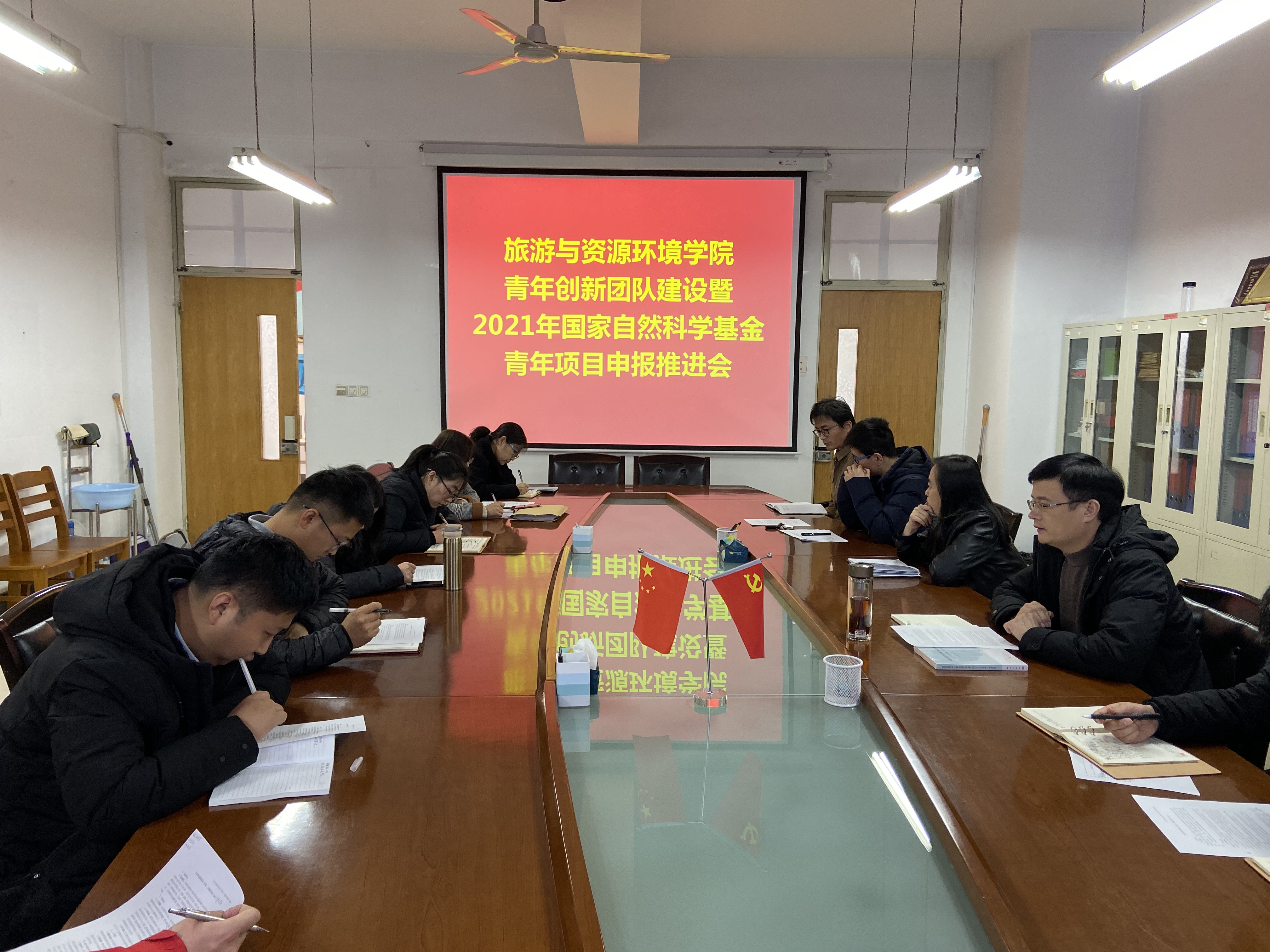 12月2日下午,旅游与资源环境学院在学院会议室召开青年创新团队建设暨2021年国家自然科学基金青年项目申报推进会。全院青年博士教师参加会议,会议由院长王满堂主持。