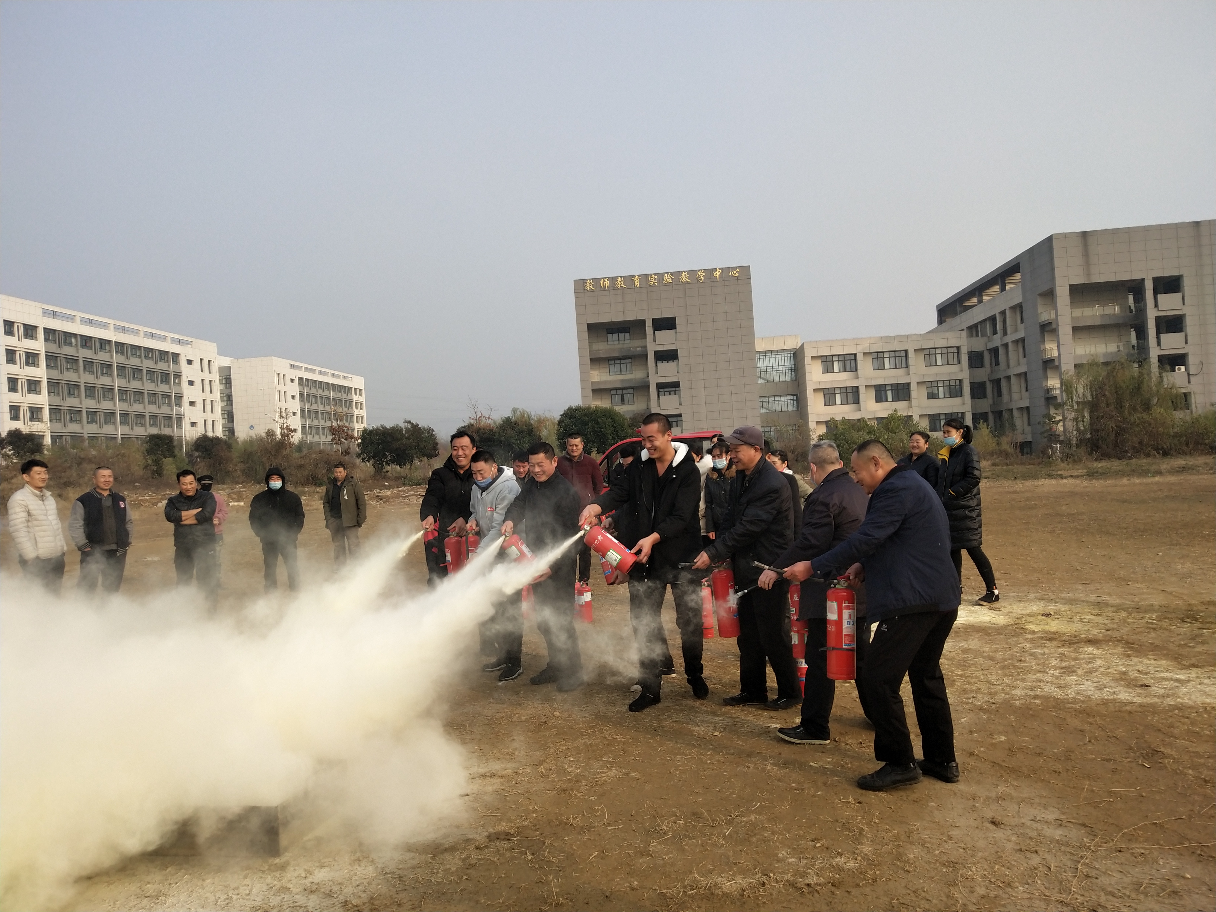 保卫处工作人员向广大员工详细讲解了干粉灭火器的使用方法,并结合火灾案例讲解了消防安全必备知识。食堂员工分为6个组,2个演练现场。他们有序地拿起灭火器,现场体验扑救油盆火,直观感受了灭火器的使用方法。演练现场秩序井然,气氛热烈。