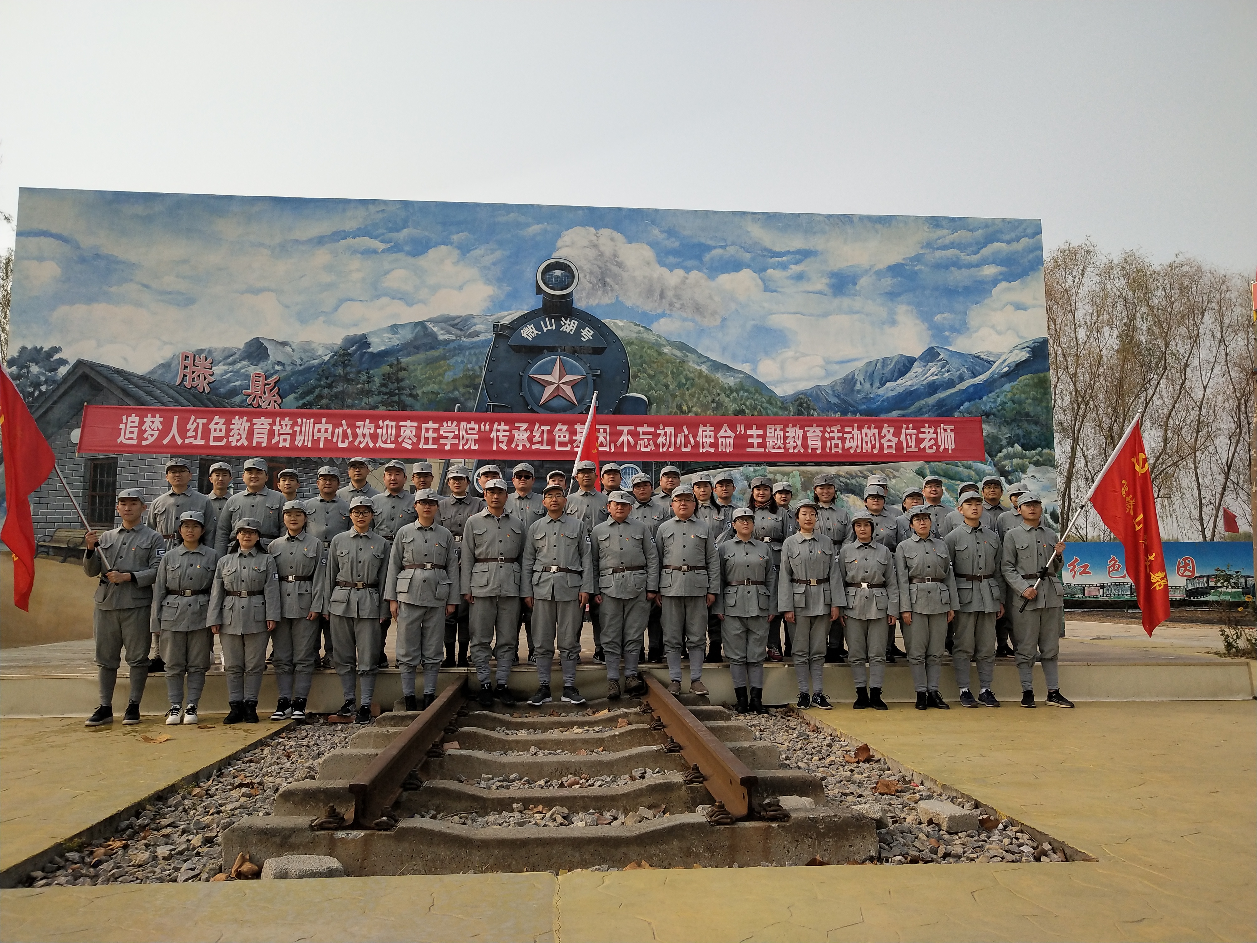 为进一步坚定理想信念,提升宗旨意识,增强党组织的凝聚力和战斗力,11月29日,外国语学院、数学与统计学院、城市与建筑工程学院党总支、行政机关第一党支部50余名党员共同赴微山湖铁道游击队党性教育基地,开展“传承红色基因,不忘初心使命”主题教育实践教学。