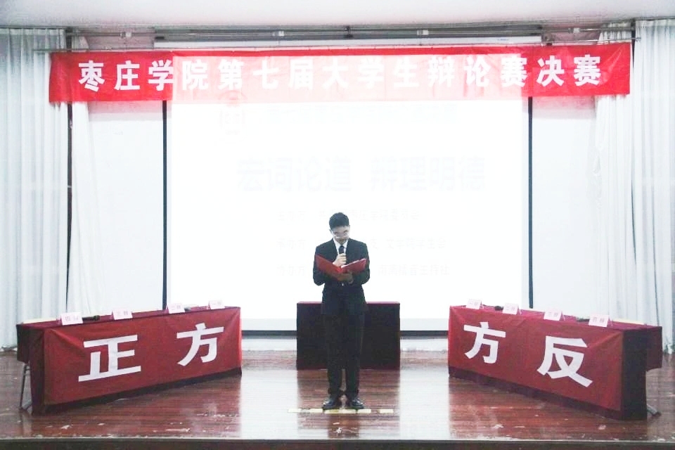 辩论赛决赛于11月30日晚文科楼报告厅举行,文学院党总支书记宋建修、党总支副书记姬广华、辅导员田发允、校级及院级学生会部分主席团成员出席本次比赛。本次决赛分为两场,政治与社会发展学院与机电学院,围绕“大学生应该向专业性人才发展还是向综合性人才发展”展开第一场辩论。第二场辩论赛在体育学院和文学院之间开展,以“大学生应当鸡头还是凤尾”作为辩题进行激烈辩论。正反双方辩手以良好的风范、出色的口才、敏捷的思维令台下观众为之折服,博得同学们热烈的掌声。
