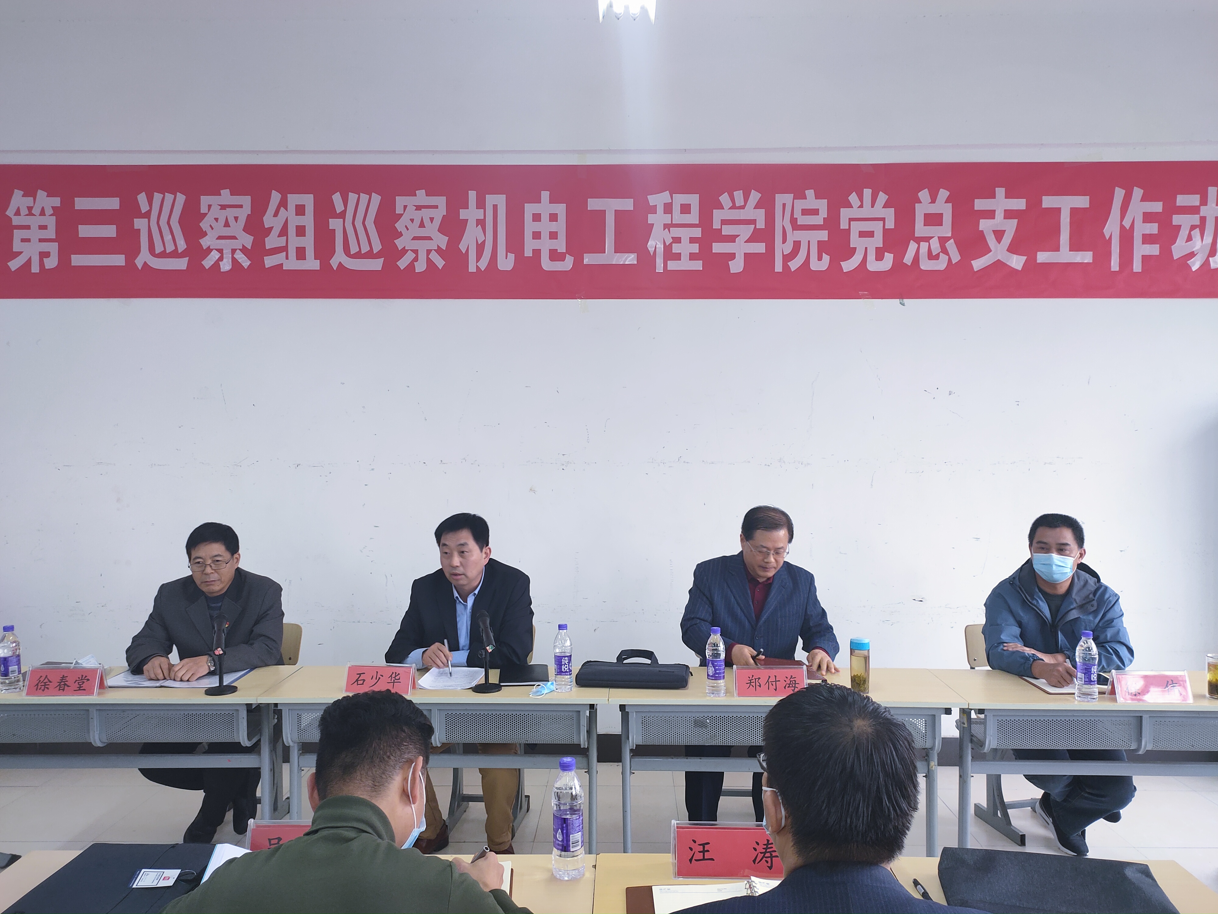 郑付海作动员讲话,分别就巡察的任务、内容及方式方法作了安排,并就本轮巡察工作提出了要求。他要求,机电工程学院党政领导班子要高度重视,积极配合巡察组的工作,学院师生员工要实事求是,客观反映问题,帮助巡察组掌握最真实的情况,保障巡察工作顺利开展。