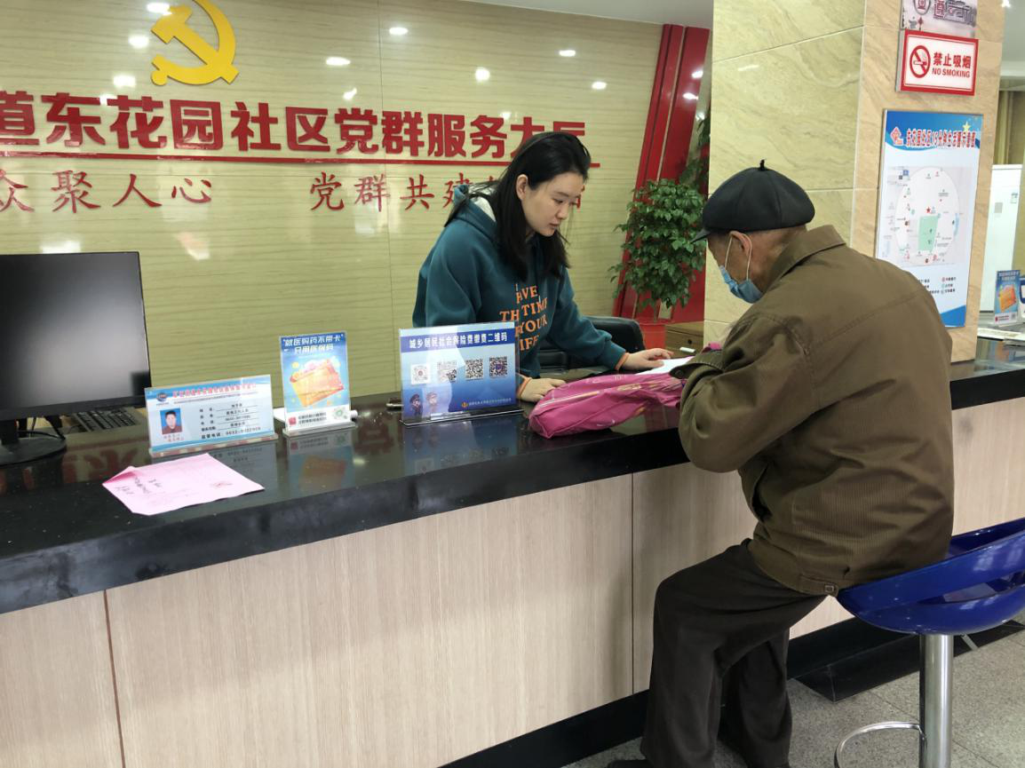 学生党员在东花园社区党群服务大厅,党员们热情为社区群众服务,向社区居民进行疫情防范宣传,耐心给社区老人讲解如何使用手机交医保并提醒居民不能忽略疫情防范。他们的热情服务得到了社区群众的认可和赞扬。他们发扬“不怕苦、不怕脏、不怕累”的精神,帮助社区进行卫生打扫,清除社区广场杂草、落叶、清扫楼道,帮助居民除草拔菜,为社区居民营造了良好的居住环境。