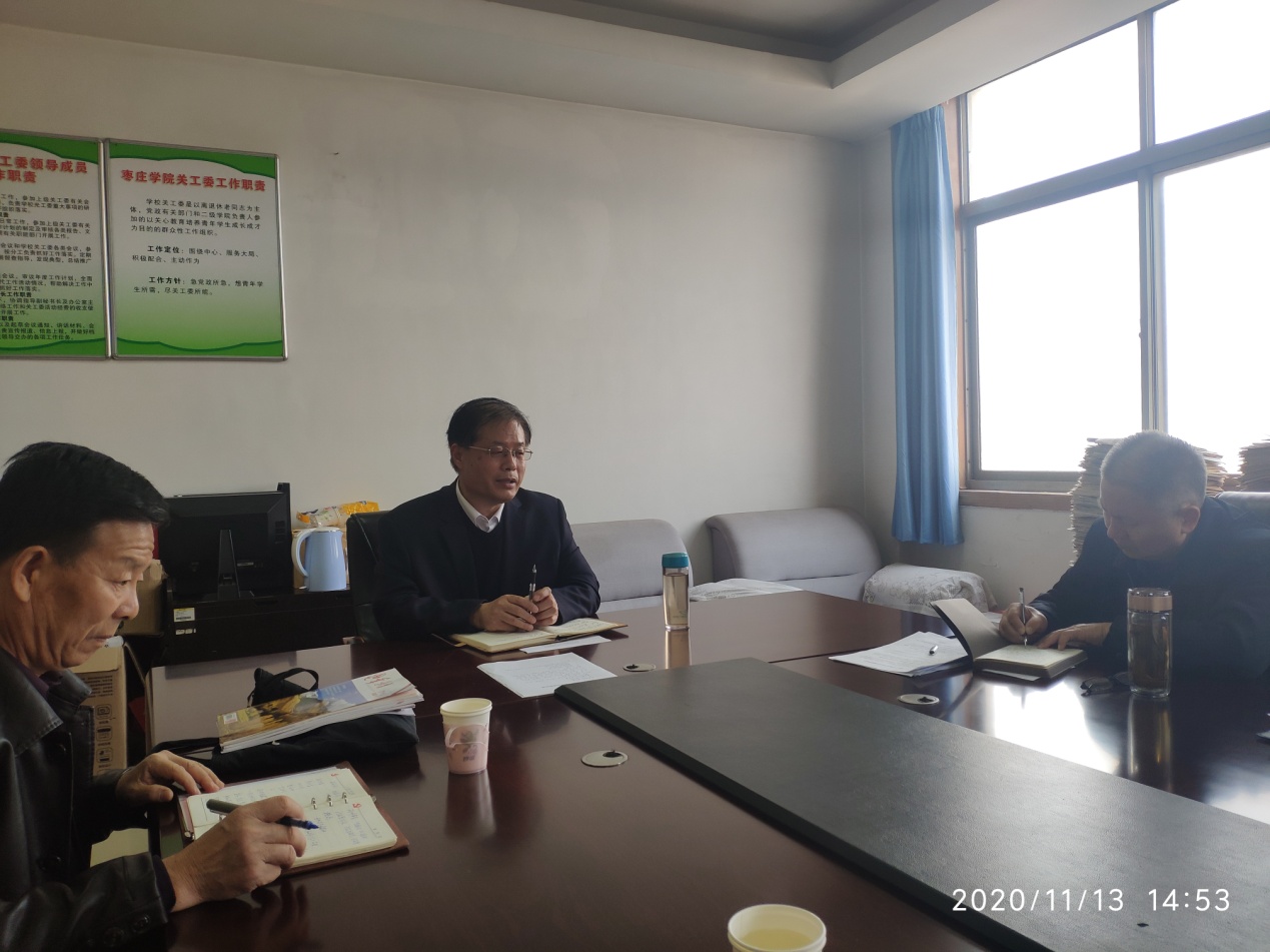11月13日下午,离退休干部党委理论中心组在综合楼10楼会议室集体学习党的十九届五中全会精神,离退休干部党委书记郑付海主持学习并讲话,副书记高庆喜及委员孟庆刚、邓兴珍、奚传志等同志参加了学习。