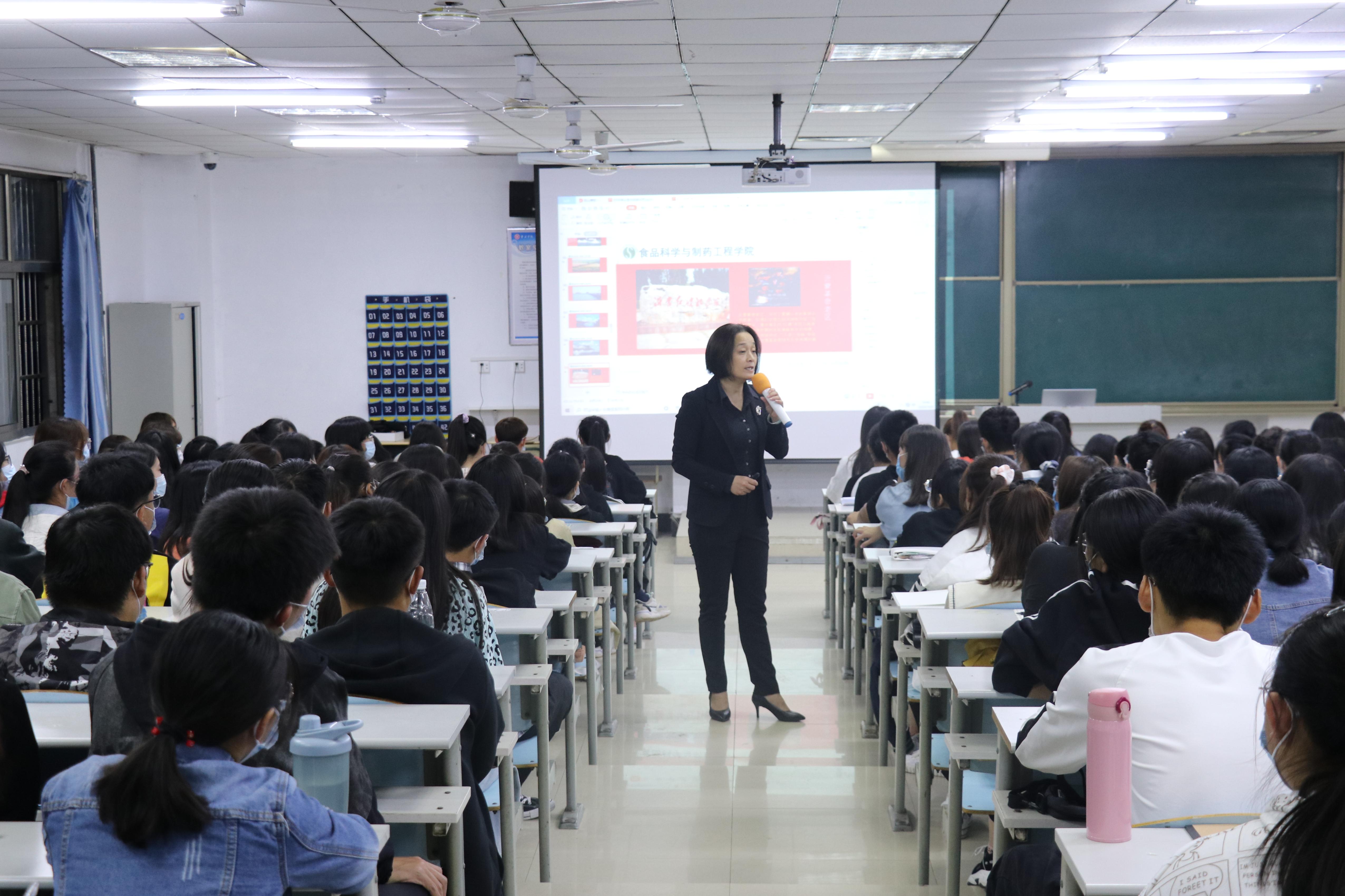 10月8日晚,食品科学与制药工程学院在理工楼2106教室开展2020级新生开学第一课,院党总支书记戴恩冰担任主讲,2020级全体新生参加。