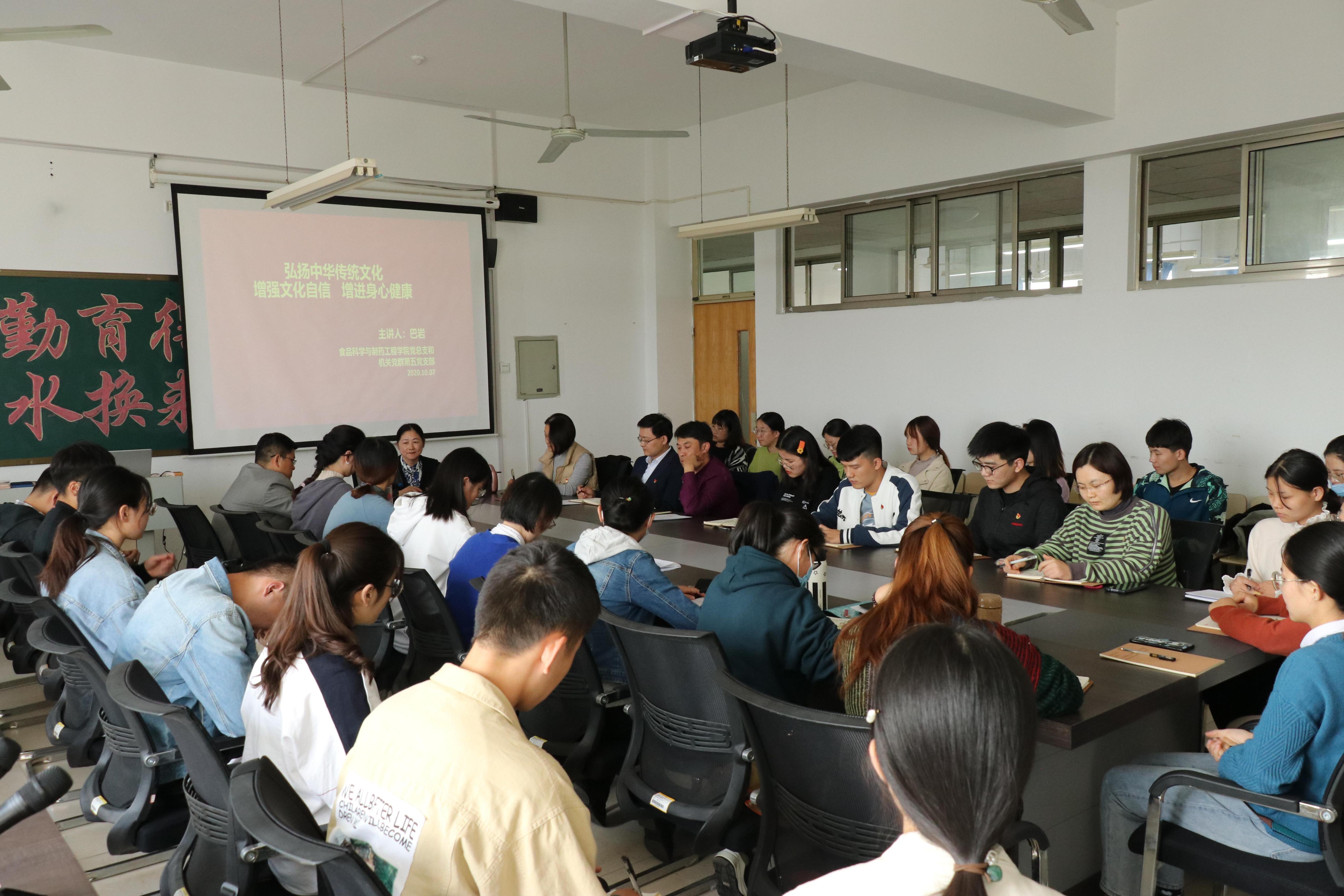 为弘扬中华优秀传统文化,助力文化自信,促进师生身心健康。10月7日下午,食品科学与制药工程学院特邀学校妇委会主任巴岩作了主题为“弘扬传统文化,增强文化自信,增进身心健康”的专题党课,全体教工和学生党员参加了党课学习。
