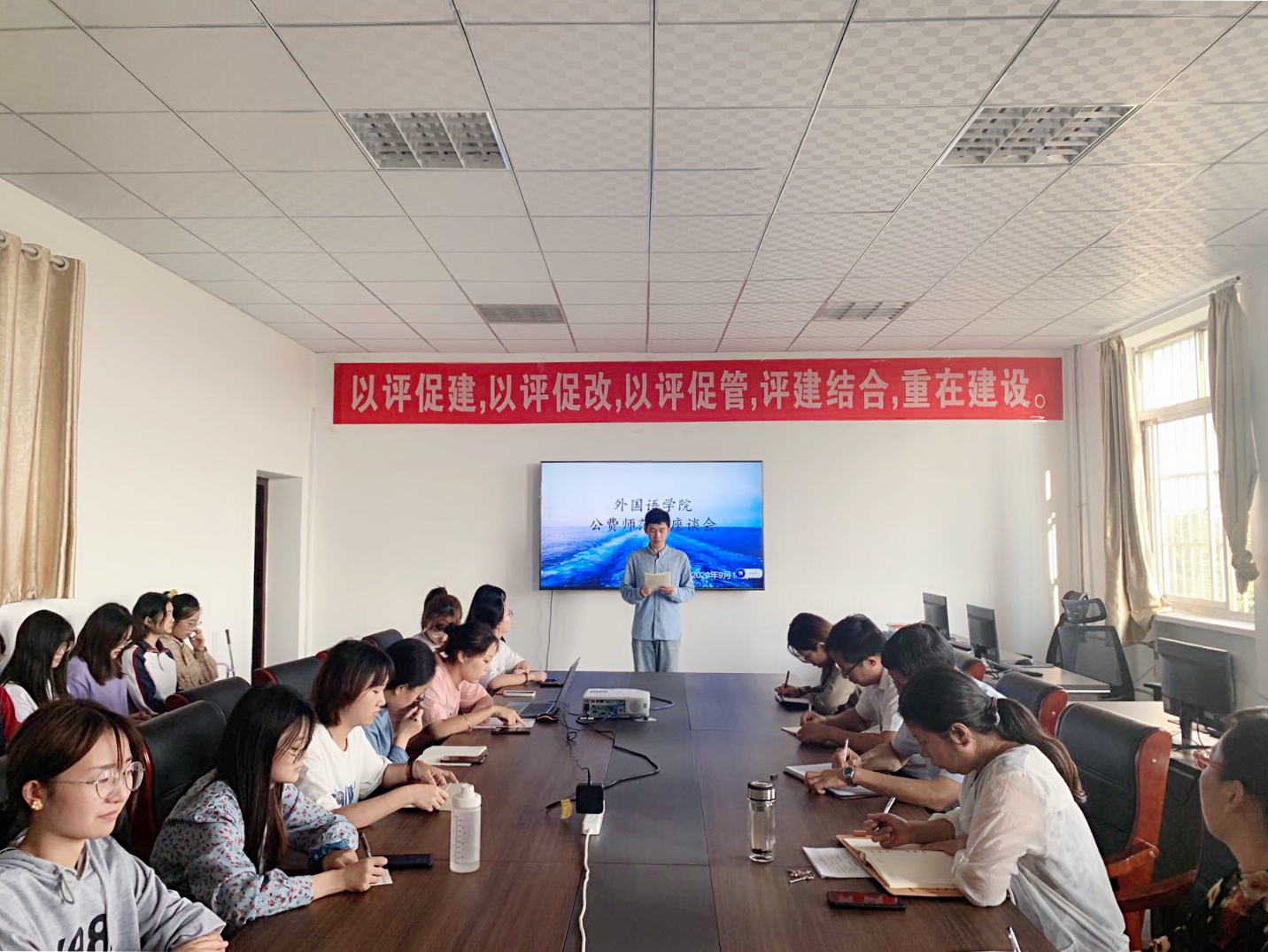 为进一步了解公费师范生入校以来的学习、生活以及思想动态,提升公费师范生人才培养质量,9月14日下午,外国语学院在文科楼309会议室召开公费师范生座谈会,学院党政领导、专职辅导员以及2018、2019级部分公费师范生代表参加了座谈会。