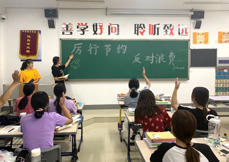 为进一步贯彻落实习近平总书记重要指示批示精神,大力弘扬中华民族艰苦奋斗、勤俭节约的传统美德,在学生群体中树立节约光荣、浪费可耻的思想观念,初等教育学院以班级为单位于9月2日-3日在全体学生中开展了“厉行节约,反对浪费”的主题教育实践活动。