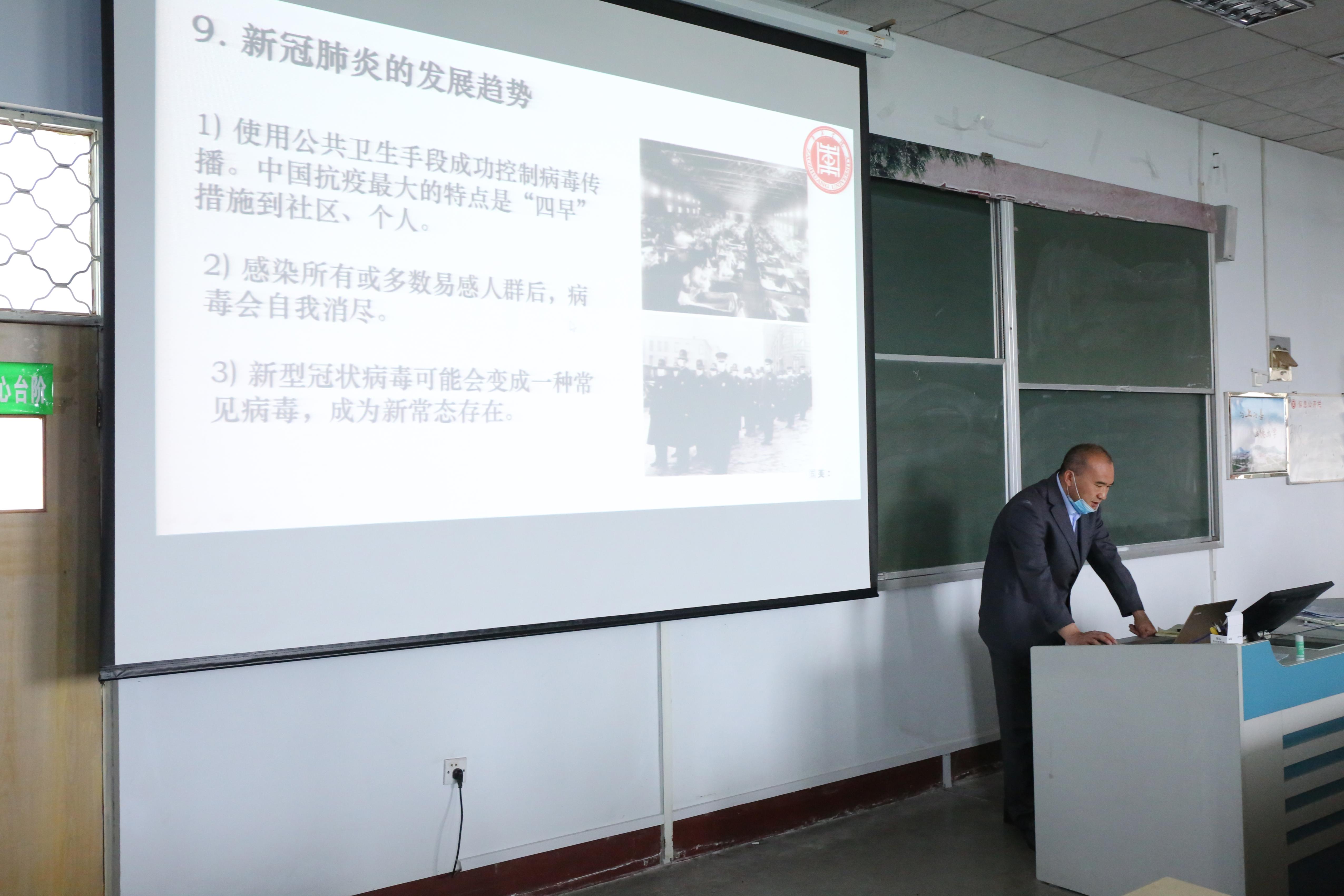 下午3点,学院组织全体教师参加专题培训第二阶段,院党总支副书记王昌龙带领大家学习了《学校新冠肺炎防控培训》《学校开学前疫情防控消毒消杀工作培训》。从新型冠状病毒简介、疫情形势及研判、公众预防措施、学校防控措施、校园预防新型冠状病毒感染等方面深入学习了校园防控新冠肺炎疫情的措施办法。